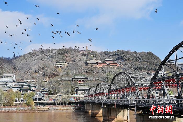 今日苦肃兰州迎去古冬尾场落雪。图为雪后的兰州中山桥战黑塔猴子园。中新社记者 9好旦删 摄